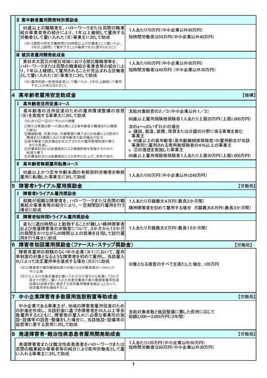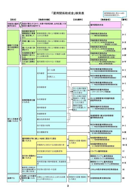 各種の助成金の要件や受給できる金額が掲載されています。